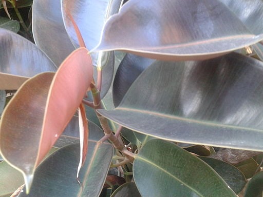 The stems of rubber trees can remain relatively soft (one might say rubbery…) even as the plant grows larger, requiring staking to keep the stem upright.