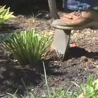Observe where the stems are, and using a sharp shovel begin making cuts around the plant about 6” from the outside stems (For shrubs, dig as far out as the widest branches reach). Angle the shovel slightly so you are cutting out a slight bowl shape.