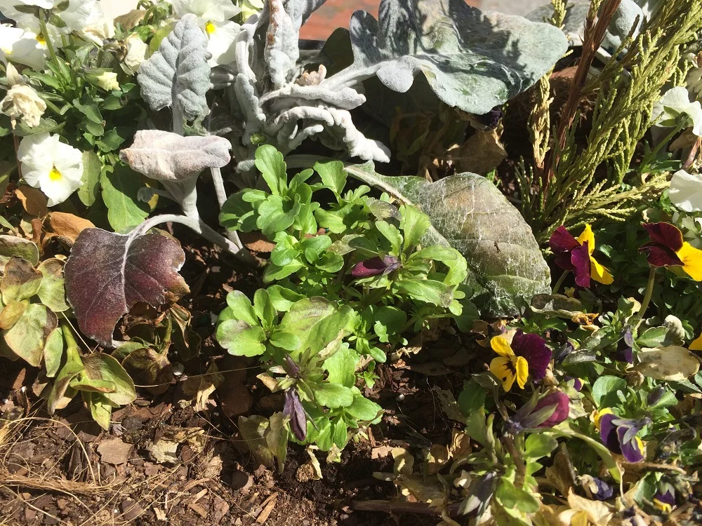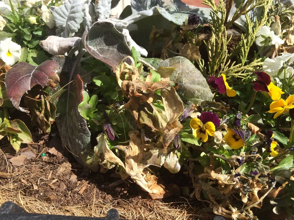 First, don't despair if they look a little ragged. Very cold weather will cause pansies to "scrunch up" and look a bit sad. As long as the plants are some shade of green, they will recover very quickly once temperatures rise. If you see tan or brown stems, pinch them off, as they were probably damaged by the cold. If your pansies were planted fairly early last fall and developed good roots, they can recover from quite a lot of cold damage.