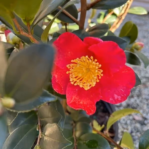Camellia ‘Yuletide’, a sasanqua type.