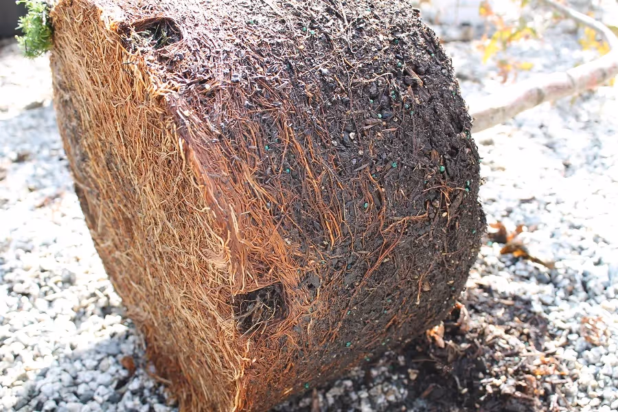 Dense roots that should be loosened before planting