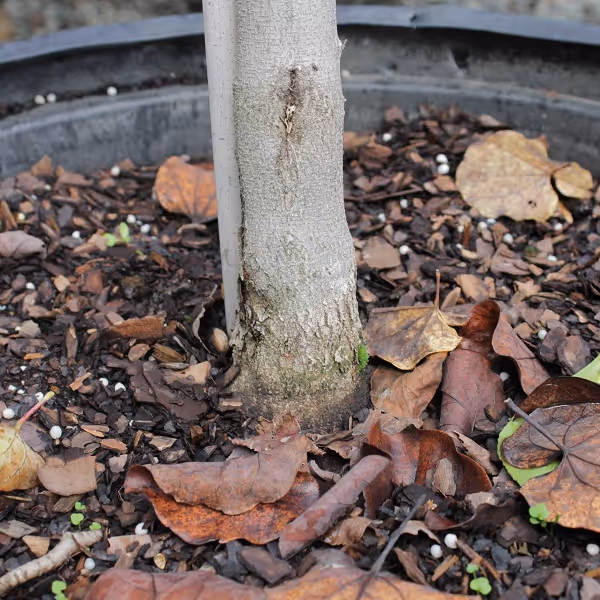 Check that the trunk flare is above the soil level of the root ball. During the digging process excess soil can be pushed on top of the root ball, burying the trunk flare. If the widening of the trunk that indicates the transition from trunk to root is not visible, gently remove soil until the flare sits at the soil level.